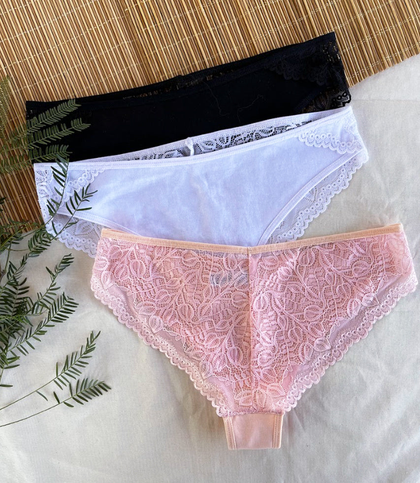 Calzón cachetero de tiro medio de algodón y encaje suave en la parte posterior. adecuado para el uso diario por su comodidad.